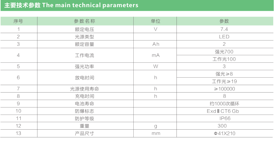 ● 具有工作光、强光、警示闪烁三档光,可作照明或远距离信号指示;