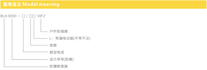 内装防爆断路器,63A及以内的采用TDL防爆断路器模块,超过63A为特制防爆元件,高强度金属外壳,结构合理,防爆性能好;