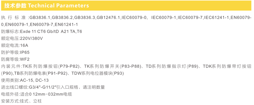 适用于可燃性粉尘环境21区、22区场所;适用于T1~T6组温度组别。