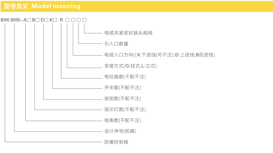 ● 控制箱由增安型外壳,防爆元件(按钮、电表、带灯按钮、指示灯、开关)及接线端子等组成;