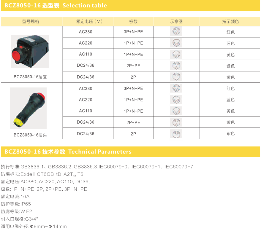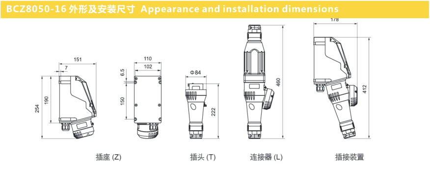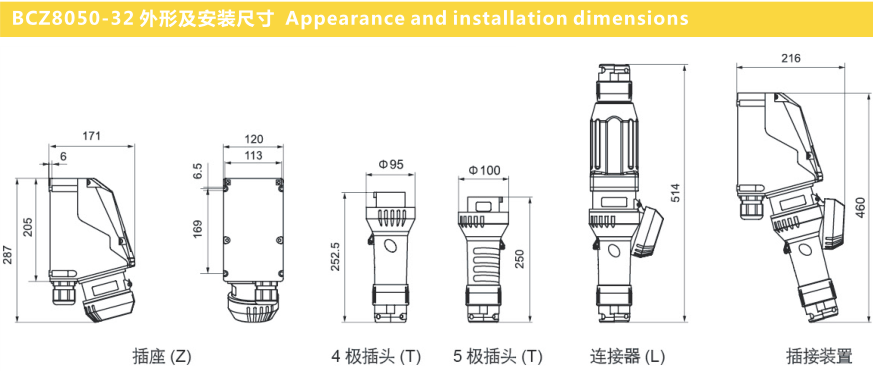 ● 具有耐腐蚀。抗静电,耐冲击热稳定性好等优良性能;具有连锁机构,只有插座内的开关分断后方能拔出插头;